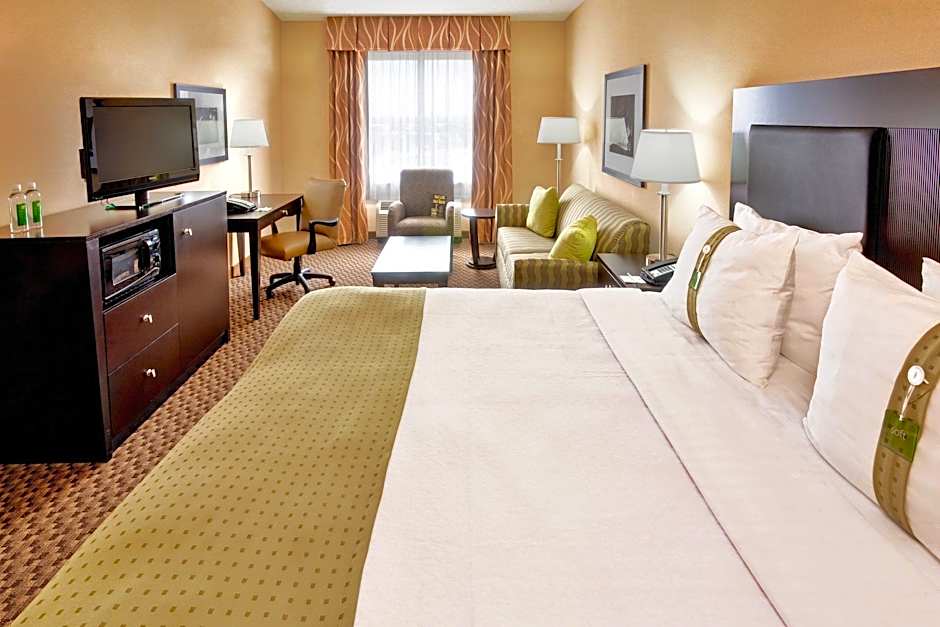 This room features a microwave, small refrigerator, and a seating area. A flat-screen TV is also included.